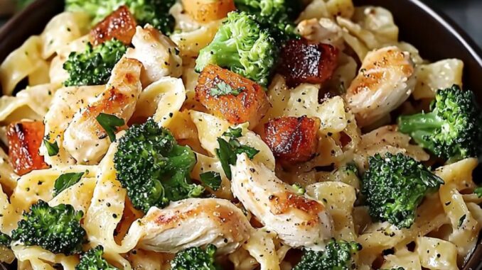 3️⃣ Mezclar los ingredientes: Agrega al tazón la pasta cocida, el pollo, el brócoli, las pasas, el apio, las almendras y los cebollines. Revuelve suavemente para que todos los ingredientes queden bien cubiertos con el aderezo. 🥗