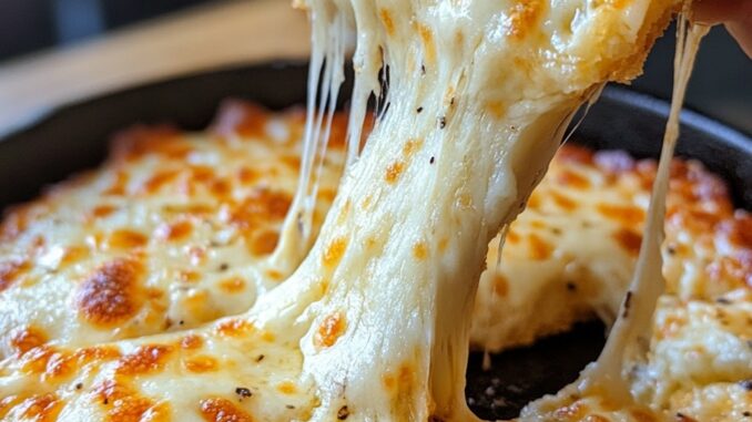 Servir: Deja enfriar unos minutos antes de cortar. Disfruta solo o acompañado de mantequilla, ajo o más queso derretido.