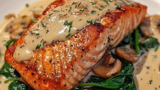🌿🐟 Salmón a la Sartén con Salsa de Champiñones y Espinacas