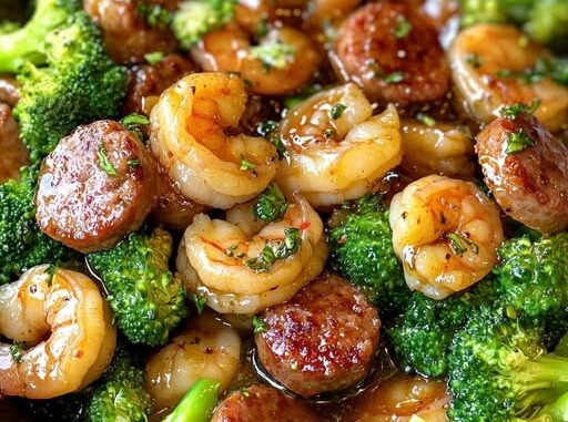 6. Combinar todo: Vuelve a agregar la salchicha y el brócoli a la sartén. Mezcla todo suavemente para que se integren los sabores y calienta durante 1-2 minutos más.