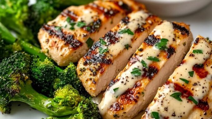 🍗 Pollo a la Parrilla con Brócoli y Salsa Cremosa 🥦