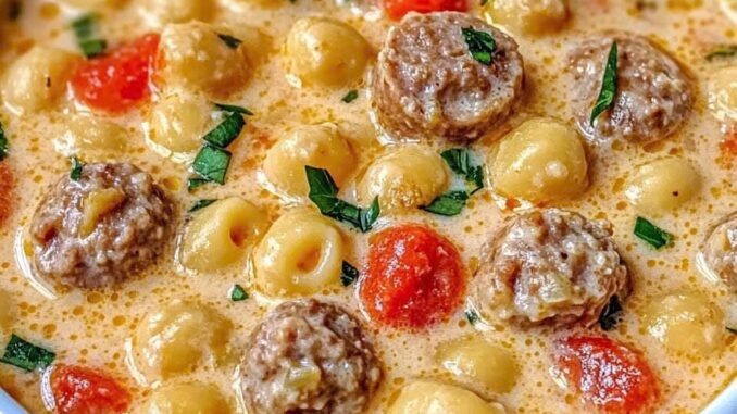 ¡Disfruta de tu deliciosa sopa de ditalini con salchicha italiana y parmesano cremoso!