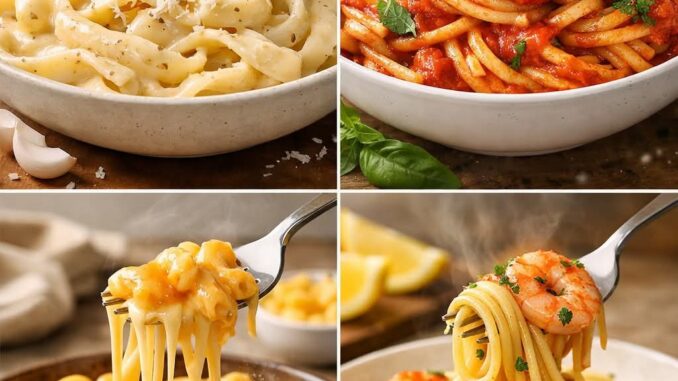 Desde una pasta cremosa hasta una opción elegante con camarones, aquí encontrarás recetas que se preparan en pocos minutos pero saben a restaurante 🍽️✨