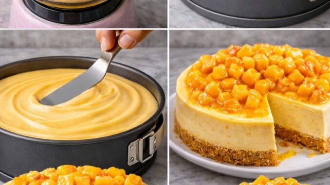 🥭🍰 CHEESECAKE DE MANGO CREMOSO: EL POSTRE TROPICAL QUE TODOS AMAN 😍✨
