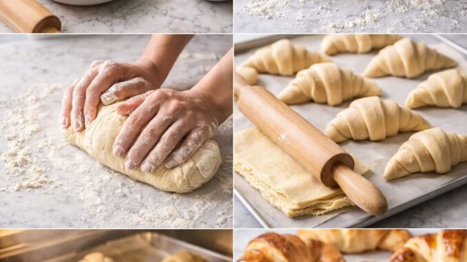 11. Deja fermentar los cuernitos a temperatura ambiente durante 1.5–2 horas hasta que se vean inflados y ligeros (evita corrientes de aire y calor excesivo para no derretir la mantequilla).
